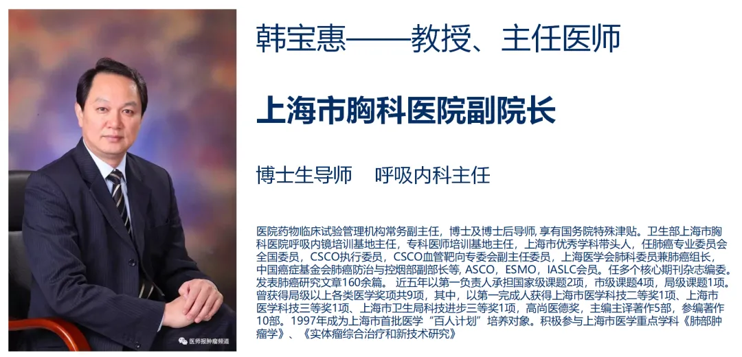 本次临床试验国内主要研究者由 上海市胸科医院韩宝惠教授 牵头,该试验是国内多中心试验,国内19 家医院参研