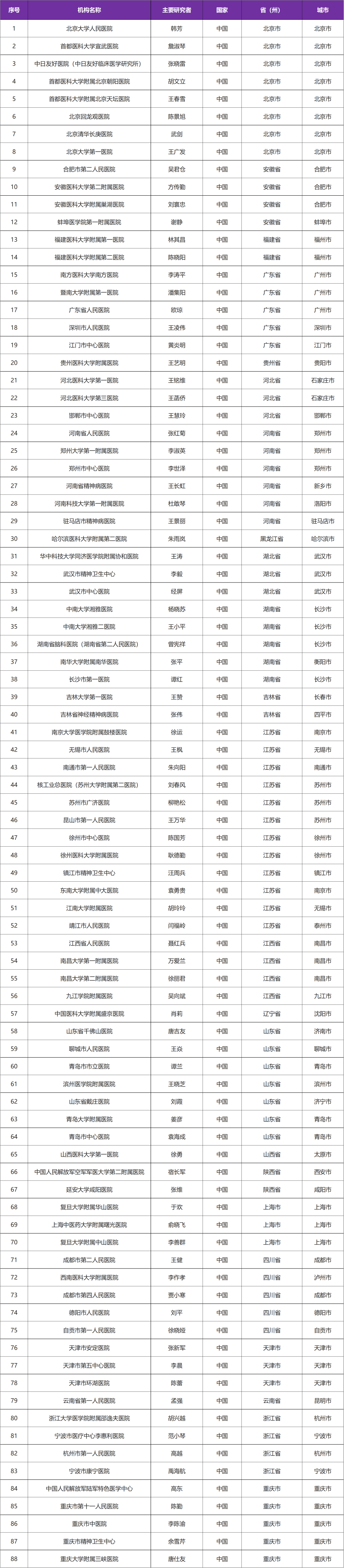 参研机构有国内 88 家医院